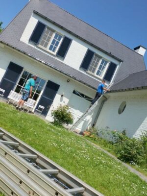 Chez Helguers Toiture & Construction, nous utilisons une technique de nettoyage basse pression au Karcher permettant d’éliminer les mousses et salissures sans abîmer les tuiles ni les ardoises.